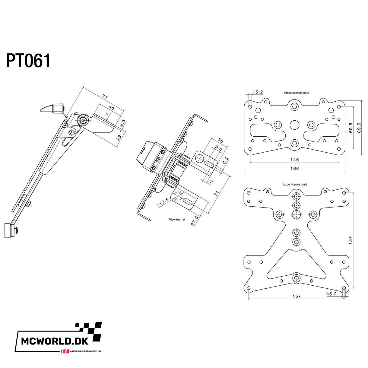 Universal justerbar nummerpladeholder med E-godkendt LED nummerpladelys.