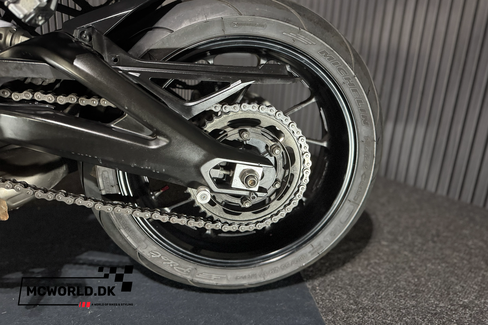ABS bremser, kørecomputer, gearindikator, titanium udstødning, indsprøjtning, halvkåbe, tonet/farvet kåbeglas, vindskærm, quickshift, tankbeskytter